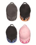 Four alarm fun in heavy brushed cotton with a contrasting flame design along the brim.