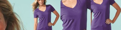 Jersey knit gives the v-neck tee a body-flattering fit.