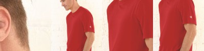 - Champion script logo at center back neck