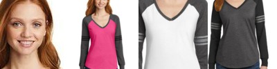 KDM477 Distict Made DM477 Ladies Game Long Sleeve V Neck Tee