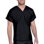 Unisex Scrub Top. Both men and women can finally agree on something. This v-neck unisex style comes equipped with dolman sleeves, back yoke and one chest pocket with pen division. 65% Polyester/ 35% Cotton Medium length 27 1/2"