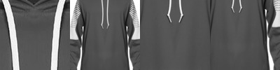 - Three-panel hood with drawcord