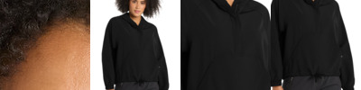- Removable, adjustable 3-panel hood with locking drawcords