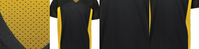 84% polyester/16% spandex knit with color secure(r) technology that helps prevent dye migration * 90% polyester/10% spandex wicking mesh inserts with color secure(r) technology that helps prevent dye migration * 4-Way stretch properties allow for increased mobility * Wicks moisture * Tag-free label * High Five logo on right chest * V-neck collar * Strategically placed seams for maximum mobility and comfort * Raglan sleeves * Designed to conform to NFHS specifications for a solid jersey