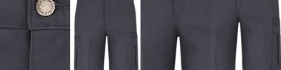 - Two pleated cargo pockets, two back patch pockets with concealed snap closures