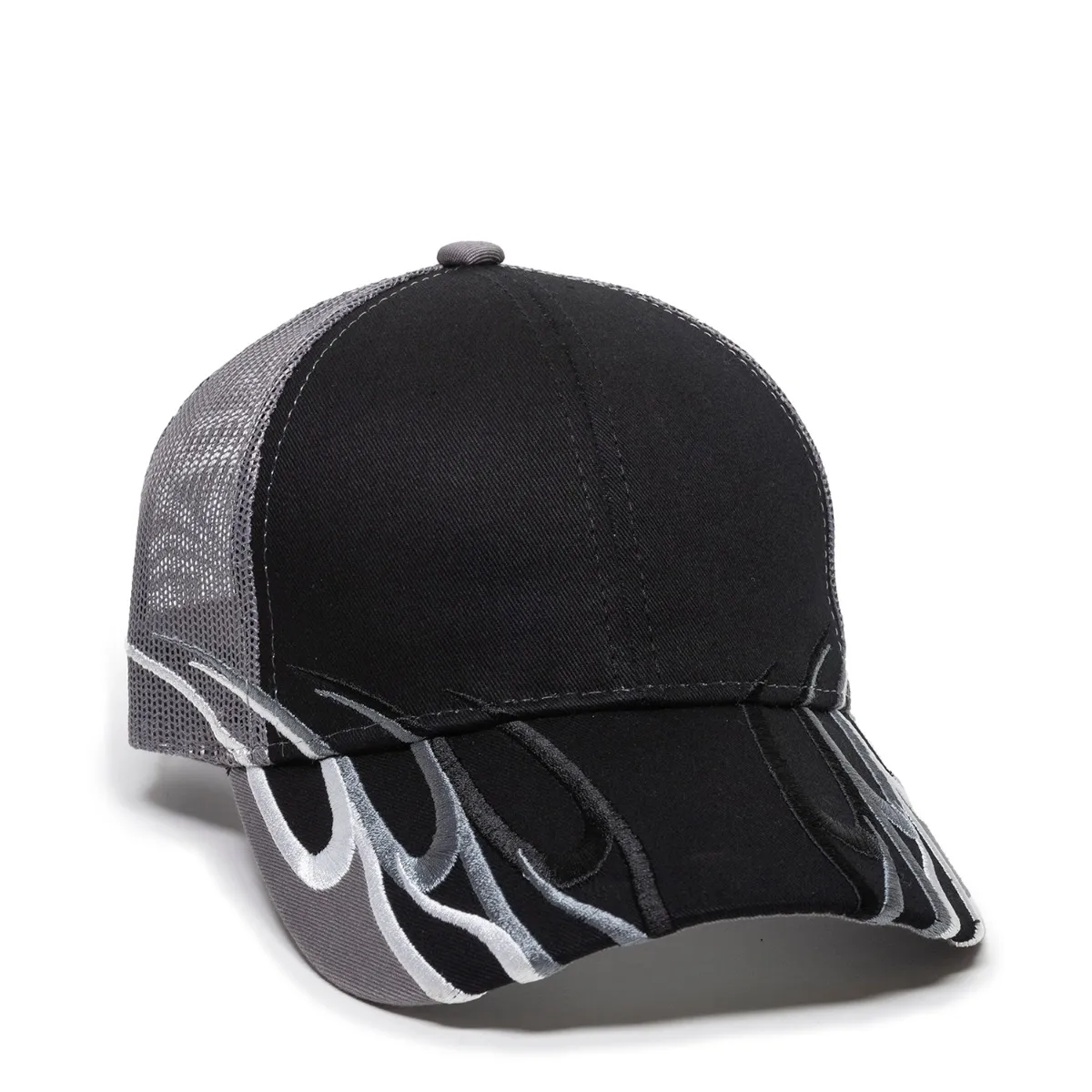 Mid to Low Crown ,Solid Back,Jersey Mesh,Pre-Curved Visor,Structured,Hook/Loop Tape Closure,Grey Undervisor